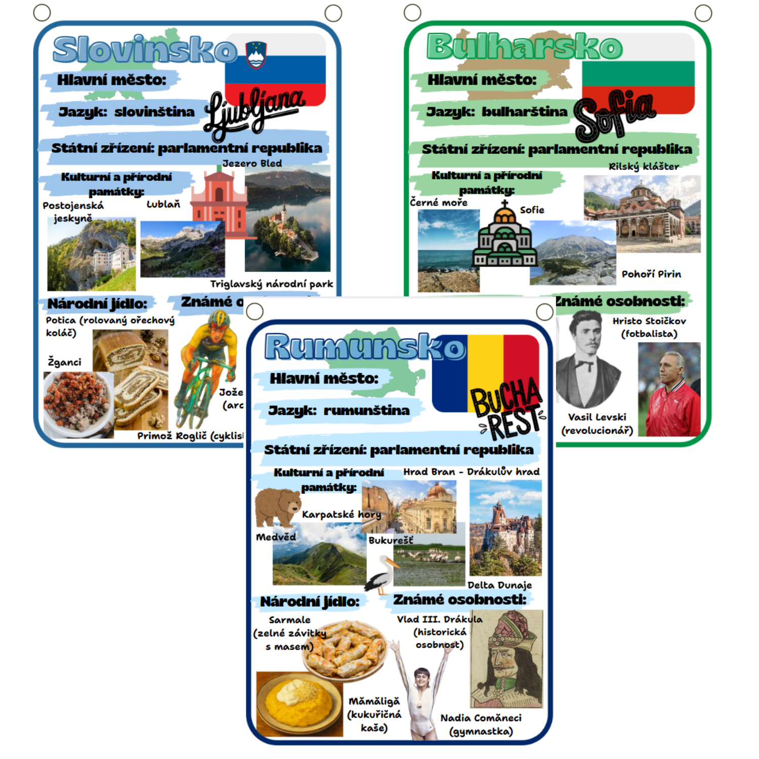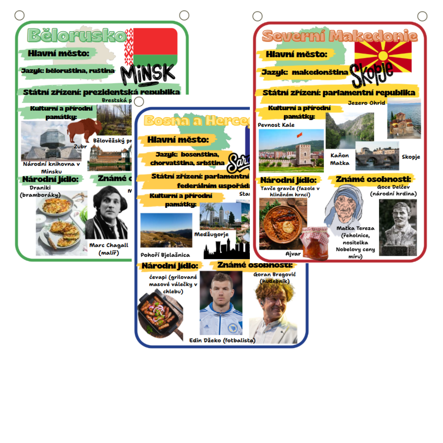 - jednotlivé plakáty lze využít jako opakovací kartičky během vyučovací hodiny