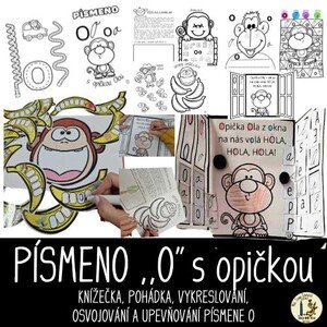 Pojďme začít s písmenkem O hravě s opičkou. Materiál obsahuje AKTIVNÍ KNÍŽEČKU (2 oboustranné PL) s těmito aktivitami