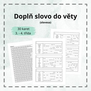 Popis: Materiál obsahuje 30 kartiček po 10 větách, do kterých žáci z nabídky doplní sloveso. Na konci naleznete řešení