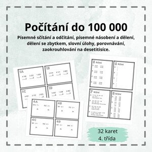 Popis: Materiál obsahuje 8 listů s různými typy příkladů ve 4 variantách. Žáci si procvičí písemné sčítání a odčítání