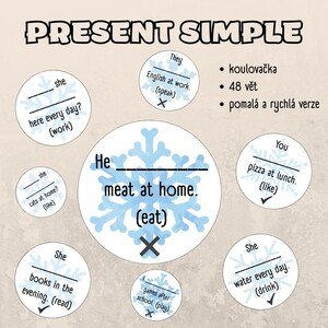 Oblíbená koulovačka na procvičení gramatiky - present simple - kladná věta, záporná věta, otázka. Soubor obsahuje: - 48