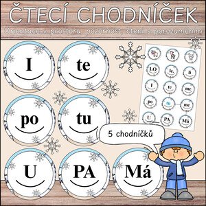 Materiál obsahuje pět čtecích chodníčků zaměřených na slabiky až po písmeno Z. Součástí každého chodníčku jsou čtecí