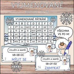 Materiál obsahuje aktivitu „Vyjmenované pátrání po M“, díky které si žáci hravou formou procvičí vyjmenovaná slova po M