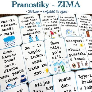 Materiál obsahuje 14 A4 stran – 28 A5 karet k výuce nebo výzdobě. Ručně malované a kreslené obrázky.
