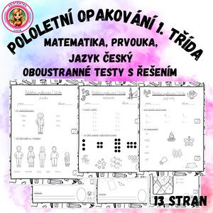 Tento materiál slouží k přehlednému zopakování učiva 1. třídy za první pololetí. Je vhodný pro běžnou výuku, opakování