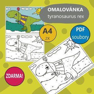 Autorská omalovánka zdarma – Tyranosaurus Rex 🦖 Zdarma nabízíme omalovánku s motivem Tyranosaura Rexe: A4 – celý obrázek