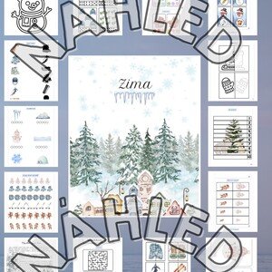 Rozsáhlý vzdělávací soubor plný zimních aktivit pro děti v MŠ. Materiály rozvíjí zrakové vnímání, logické myšlení