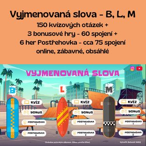 Hra má 3 hlavní části podle písmen. U každého písmena je kvíz s 50 otázkami, bonusová hra s dalšími 20 slovními spojeními a 2 hry Postřehovka - jedna je přímo na vyjmenovaná slova a druhá na různá slova psaná s daným písmem + ypsilon.