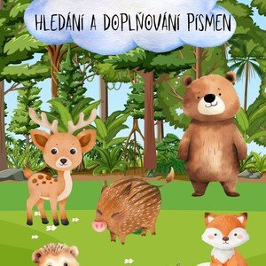 Hledání písmen tematicky zaměřené kartičky. Na každé kartičce je v horní části napsáno slovo s obrázkem. Děti mají za