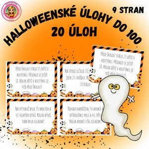 Materiál obsahuje 20 originálních halloweenských slovních úloh zaměřených na procvičování sčítání a odčítání do 100