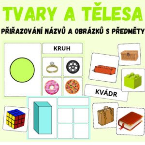 Materiál obsahuje: 4 karty na geometrické tvary (čtverec, obdélník, kruh, trojúhelník). 6 karet na geometrická tělesa (