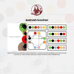 Děti si mohou hravě spojovat barevná kolečka a vytvářet vlastní originální pavučiny. Materiál obsahuje předpřipravené