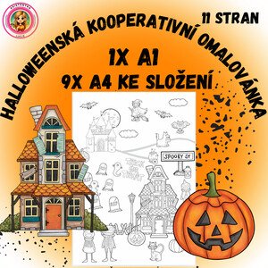 Materiál představuje kooperativní omalovánku s halloweenskou tematikou, určenou k společné tvorbě celé třídy. Motiv je