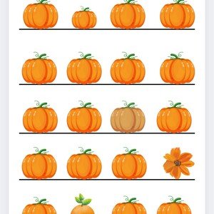 Tento soubor obsahuje: porovnávání velikostí dýní přiřazování tvarů k dýním puzzle hledání odlišné dýně v řadě aktivity