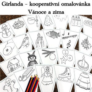 Materiál obsahuje 37 A4 stran – vlaječky k výzdobě třídy určené k vymalování/vykreslení na téma Vánoce, zima. Děti si