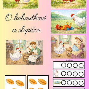 Vytvořila jsem soubor k pohádce „O kohoutkovi a slepičce“. Ilustrace jsou vytvořeny pomocí AI. Doufám, že se vám soubor