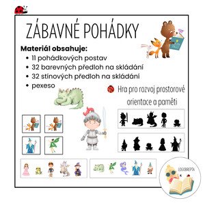 Hra pro rozvoj prostorové orientace a paměti 🧙♂️ Materiál obsahuje: 11 pohádkových postav 32 barevných předloh na