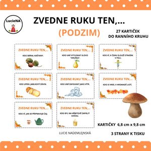 ZVEDNE RUKU TEN,… (PODZIM) Barevný PDF soubor obsahuje 4 strany A4: - 27 kartiček o rozměrech 6,8 cm x 9,8 cm - + Úvodní