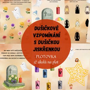 Vyzdobte si plot tematicky k svátku Dušiček! Na plotě vám bude viset 12 úkolů + úvodní strana. Během plnění úkolů děti
