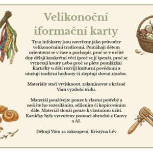 Informační kartičky provází Velikonočním obdobím a sním spojenými tradicemi. Soubor obsahuje 22 kartiček se základními