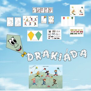 Výukový soubor Drakiáda obsahuje grafomotorické cvičení, omalovánky, dvě sady kolíčkování, dějovou posloupnost, hledání