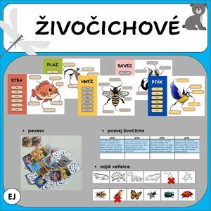 Materiál využijeme v hodinách prvouky. Žáci si procvičí: stavbu těla savce, ptáka, plaze, hmyzu a ryby třídění živočichů