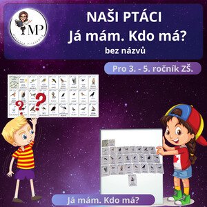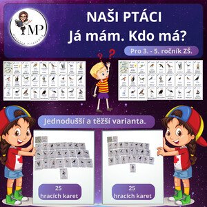 Téma Naši ptáci - ptáčci s názvy u obrázků. Sada koncipovaná jako aktivita JÁ MÁM, KDO MÁ. Vhodné do prvouky a