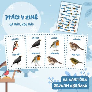 Soubor obsahuje: 28 kartiček určených ke hře "Já mám, kdo má" s obrázky ptáků, seznam jednotlivých obrázků s názvy. Hra