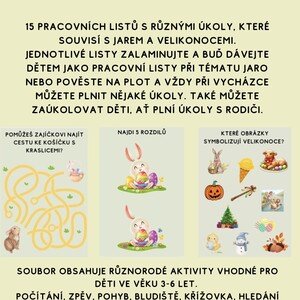 15 pracovních listů s různými úkoly, které souvisí s jarem a Velikonocemi. Soubor obsahuje různorodé aktivity vhodné pro