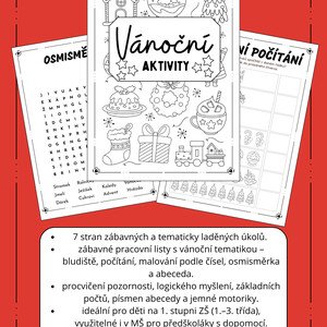 Hravé vánoční pracovní listy pro 1.–3. třídu ZŠ Udělejte dětem adventní čas ještě kouzelnější! Tento soubor 7 hravých