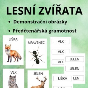 Lesní zvířata - demonstrační obrázky, předčtenářská gramotnost Aktivita je vhodná pro děti z MŠ (4-6 let) a děti