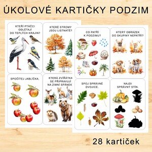 Soubor obsahuje 28 kartiček. Součástí materiálu je i správné řešení. Úkolové kartičky obsahují různé typy aktivit. Děti