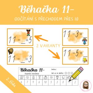 Hravá běhačka pro prvňáky a druháky, která procvičí odčítání s přechodem přes desítku (typ 11−). Děti se při aktivitě