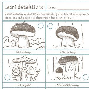 Hurá do lesa! Zabavte děti v přírodě. PDF obsahuje oblíbenou detektivku ve formátu A4 určenou k učení rozpoznávání hub.