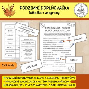 Hravý pracovní list, který propojuje podzimní témata s jazykovými dovednostmi. Děti doplňují chybějící slova do vět
