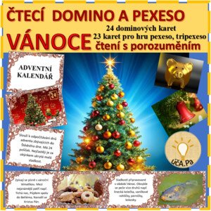 Dominové karty a pexeso s vánoční tématikou. Cílem materiálu je rozvíjet čtenářskou gramotnost. Propojuje prvky českého