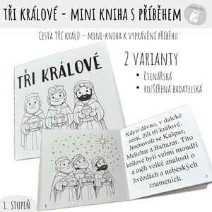 Materiál pracuje s příběhem tří králů formou mini knihy a nabízí dvě varianty práce s textem. Čtenářskou verzi s hotovým