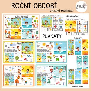 Barevně zpracovaný soubor, který dětem pomůže pochopit střídání ročních období a jejich hlavní znaky. Každé období je