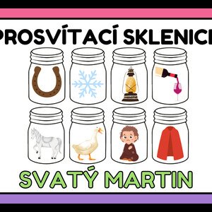 Do průhledných sklenic jsou vloženy obrázky symbolů svátku svatého Martina. Sklenice se nasvítí baterkou, přes okno nebo