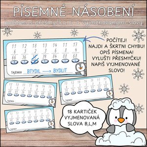 Materiál obsahuje osmnáct kartiček se zimní tematikou, které jsou zaměřené na procvičování písemného násobení a na