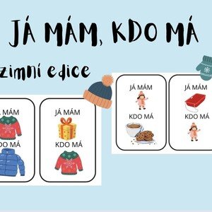 Karetní hra tematicky zaměřená na zimní období. Obsahem je 30 oboustranných hracích karet a přehledová karta s názvy