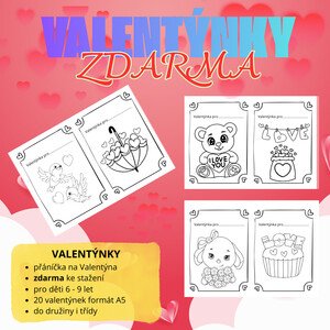 VALENTÝNKY Co vše obsahuje: ✅ o bsahuje 20 různých valentýnek formátu A5, které si děti mohou vybarvit a někomu darovat