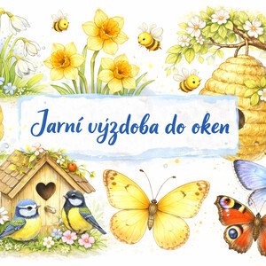 Soubor obsahuje sadu jarních ilustrací, které jsou připravené k tisku na bílém pozadí, ideální jako výzdoba do oken, na