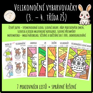 🐣 Velikonoční vybarvovačky (3.–4. třída ZŠ) Výukový materiál obsahuje 7 tematicky laděných pracovních listů s