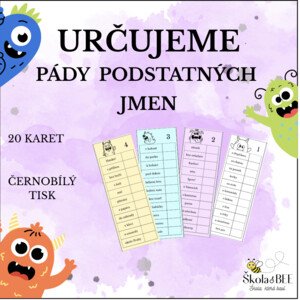 Soubor obsahuje 20 hravých karet zaměřených na určování pádů podstatných jmen (1.–7. pád). Žáci pracují s předložkovými