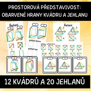 Materiál rozvíjí prostorovou představivost žáků pomocí barevných hran kvádrů a jehlanů. Materiál je k dispozici ve dvou