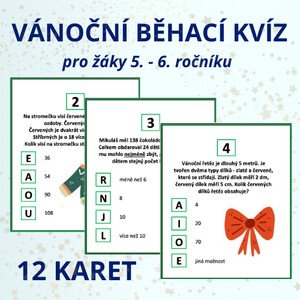 Aktivita obsahuje 12 karet + list k napsání tajenky. Každá karta obsahuje zadání úlohy + 4 možnosti. Do tajenky žáci