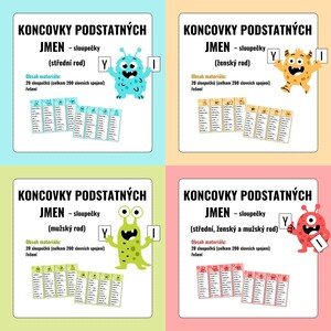 Zvýhodněná sada 4 materiálů: KONCOVKY PODSTATNÝCH JMEN – střední rod KONCOVKY PODSTATNÝCH JMEN – ženský rod KONCOVKY