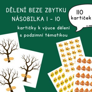 11 stromů s příklady na dělení - 110 KARTIČEK Jak materiál použít? Jednotlivé stromy a listy barevně vytiskněte