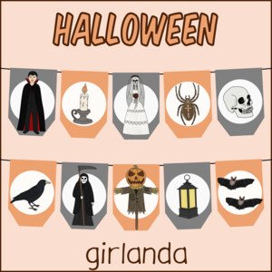 Soubor obsahuje 25 vlaječek formátu A4, na nichž najdete ilustrace s halloweenskými motivy. Vlaječky stačí vytisknout